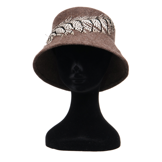 Quality flecked brown felt, lady amherst pheasant feather wrap around feature